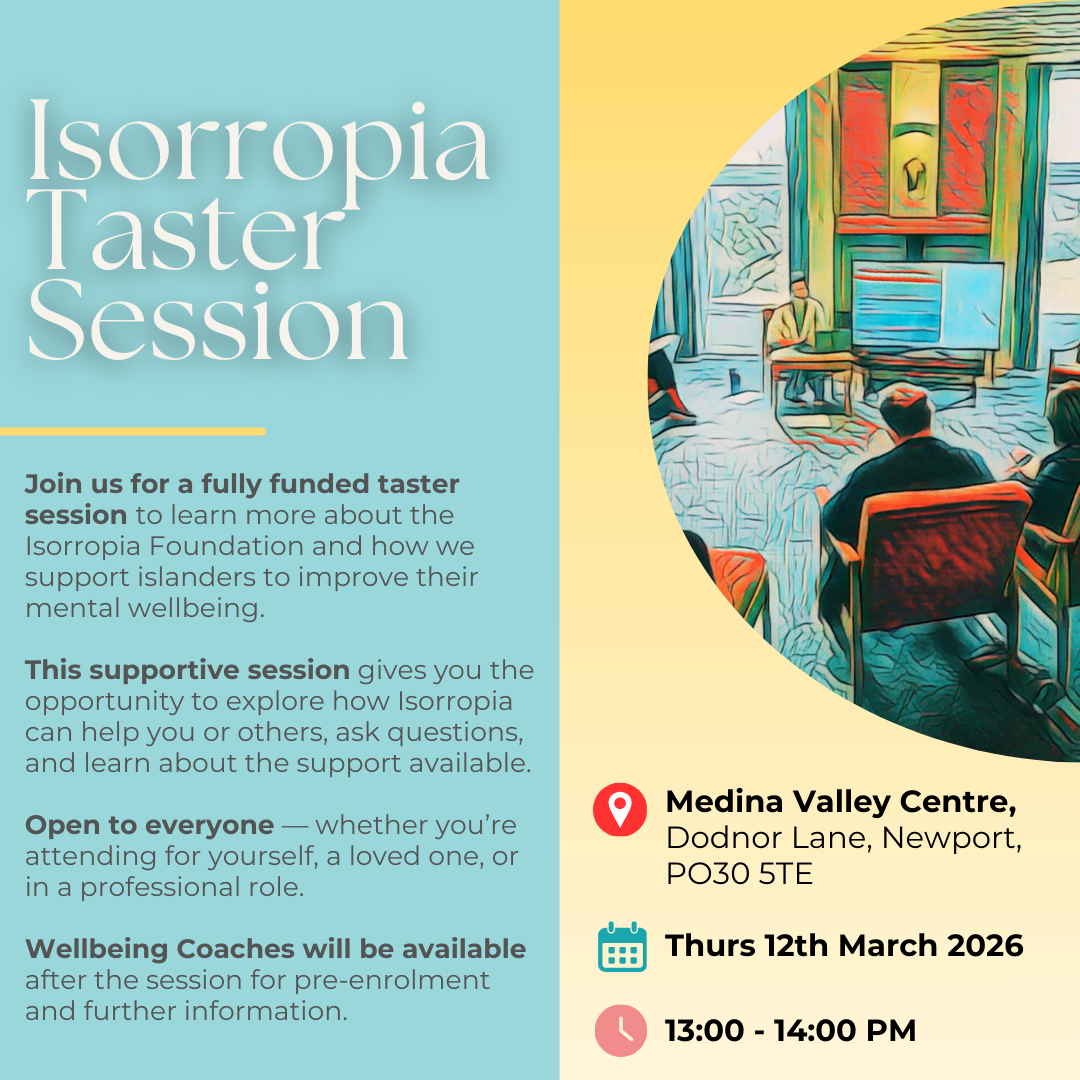 Join us for a fully funded taster session to learn about Isorropia Foundation and how we support Islanders improve their mental wellbeing. We will have wellbeing coaches on hand to answer all your questions.